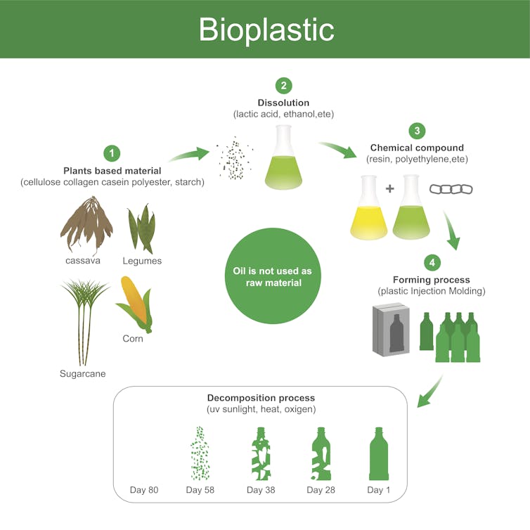 A more fundamental solution is to switch to making plastics from biodegradable sources such as wood, corn starch, and sugar cane. The materials themselves are carbon neutral, although renewable power is essential to eliminate the climate impact of energy costs during production, transport and waste processing.